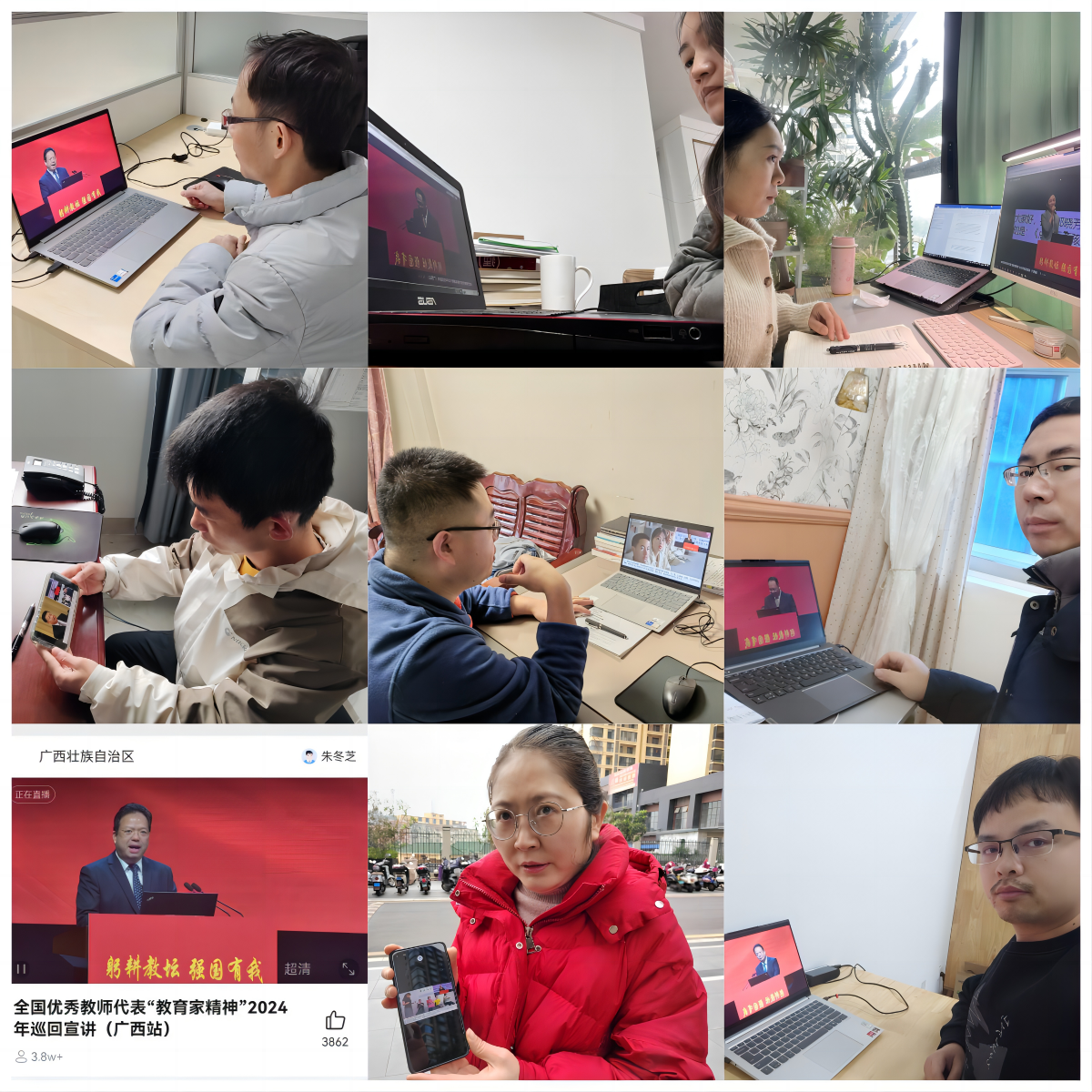 3月3日上午,学院通过线上线下相结合的形式,组织全体教师开展思想政治和师德师风常态化建设专题培训,观看学习以“弘扬教育家精神、争做新时代大先生”为主题的教育部教育家精神2024年巡回宣讲。陈考老师在广西大学汇学堂参与现场学习,学院其他教师利用网络平台线上观看学习。