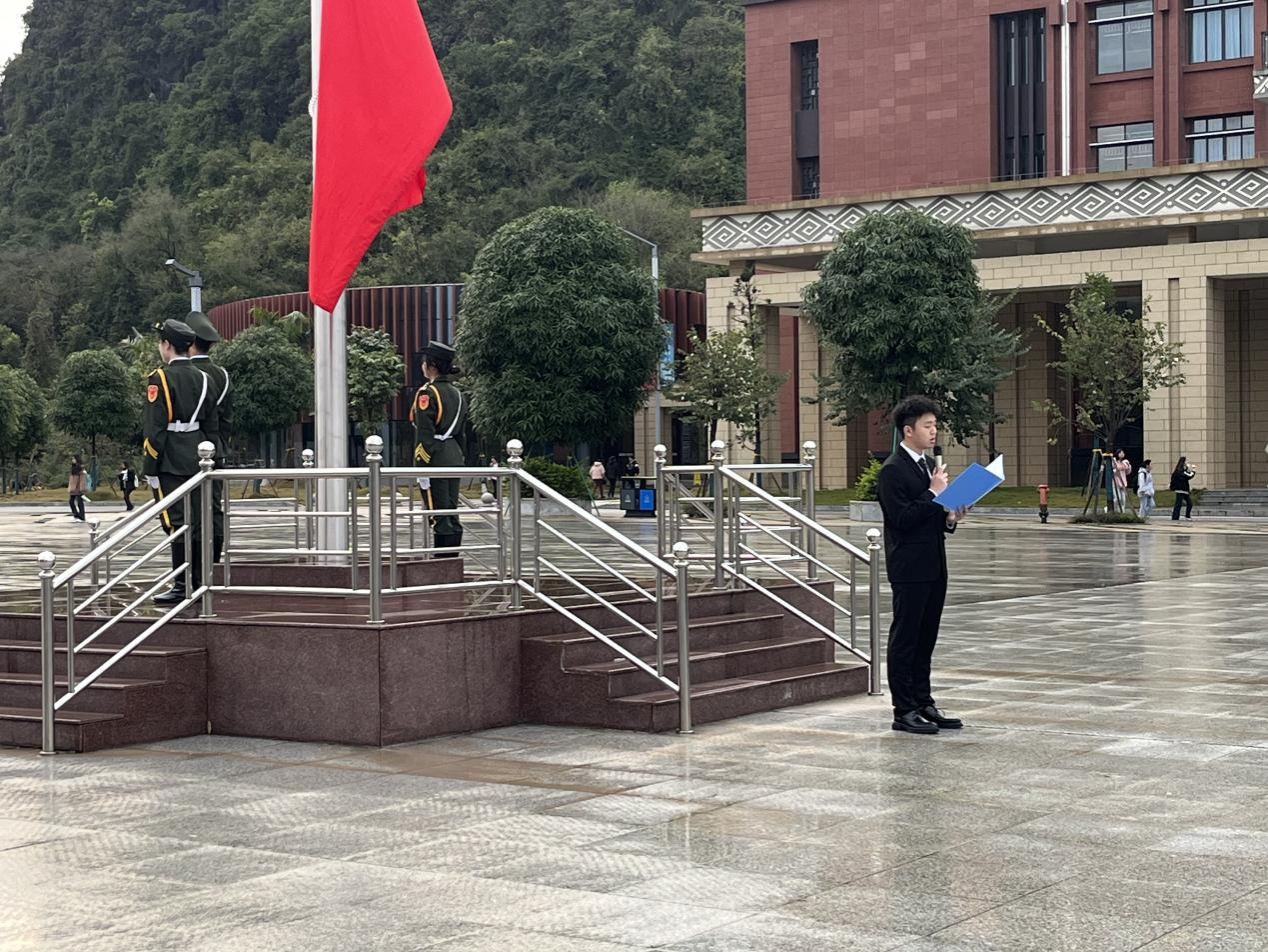 2022级高分子材料与工程1班的刘洋同学作为学生代表在国旗下作主题为《新学期,新征程》的演讲。他号召同学们牢记使命,明确新学期目标,坚持、自律,以永不止步、不断进取的姿态在新的学期抒写新篇章。