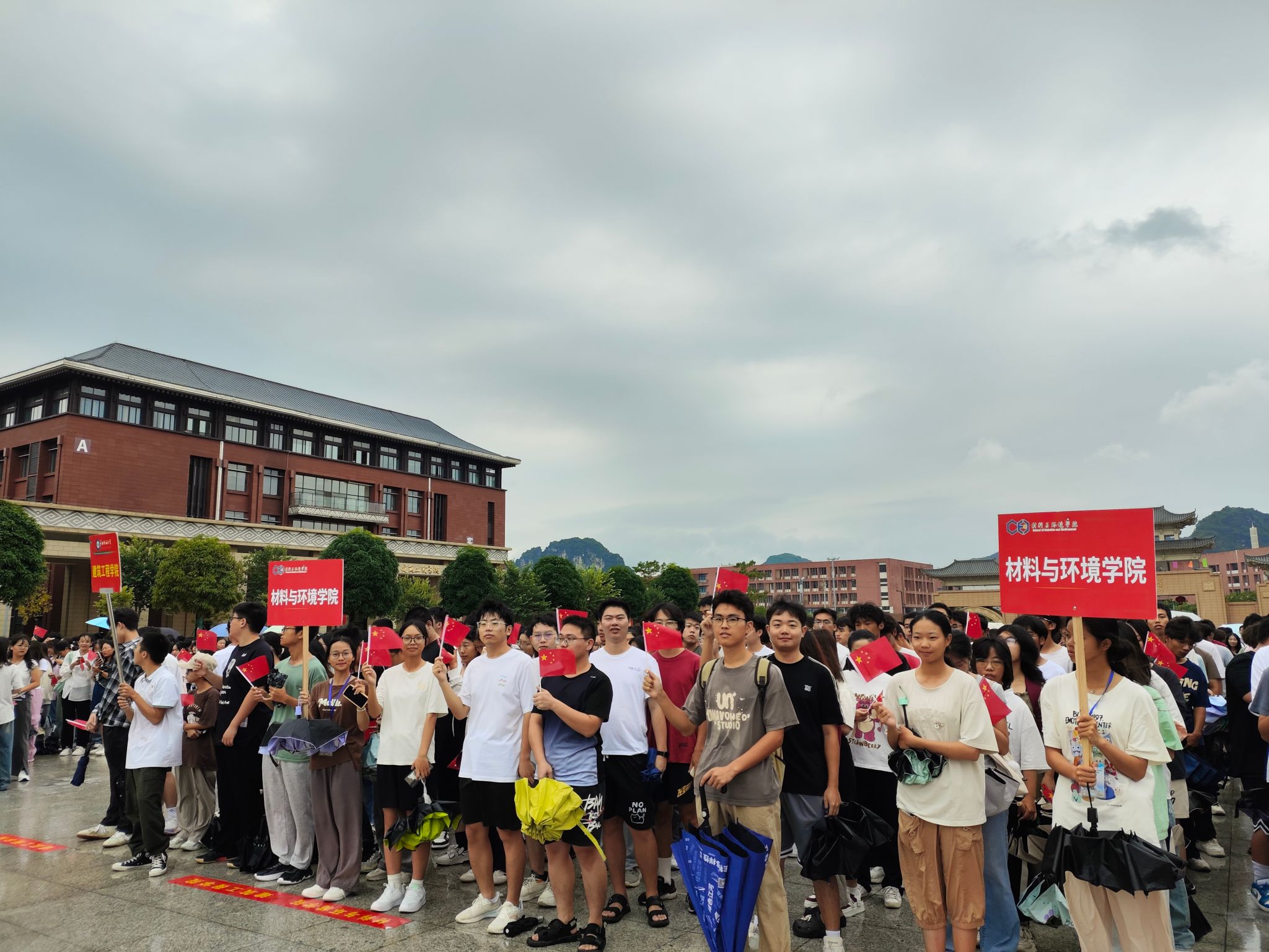 为热烈庆祝中华人民共和国成立75周年,传承红色基因,弘扬爱国主义精神。10月1日上午,广西民族大学国庆升旗仪式在相思湖校区、思源湖校区和武鸣校区同步举行,乐天使组织师生在武鸣校区厚德广场参加升旗仪式。