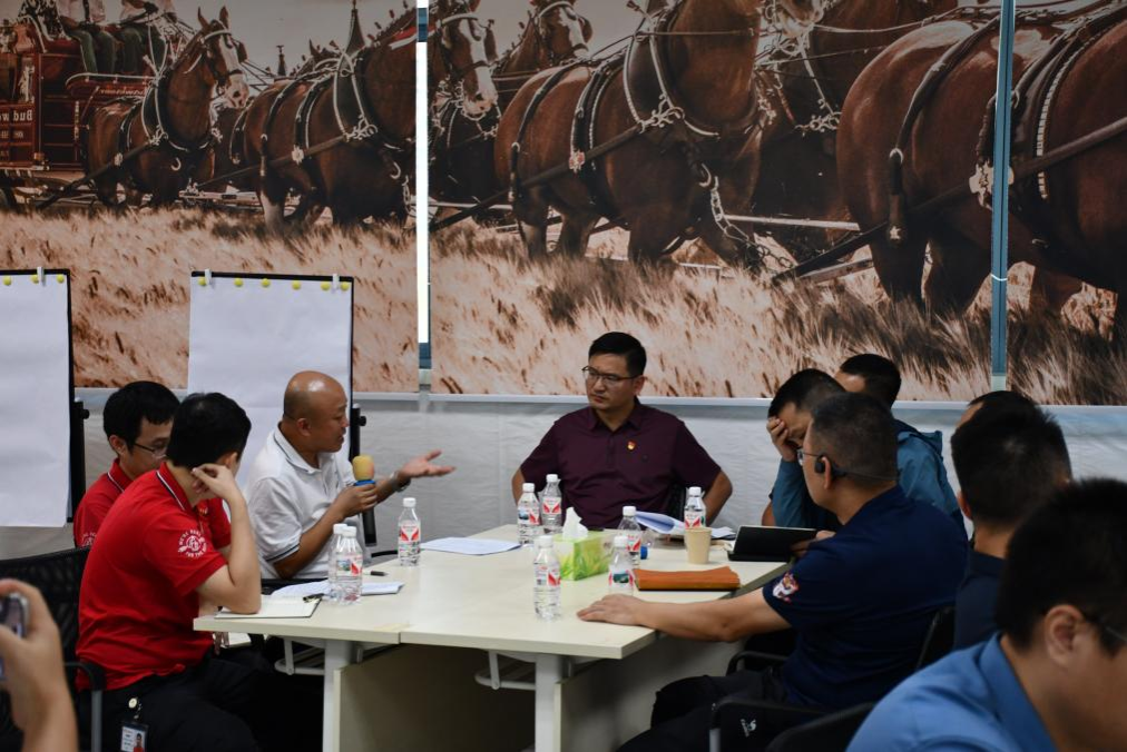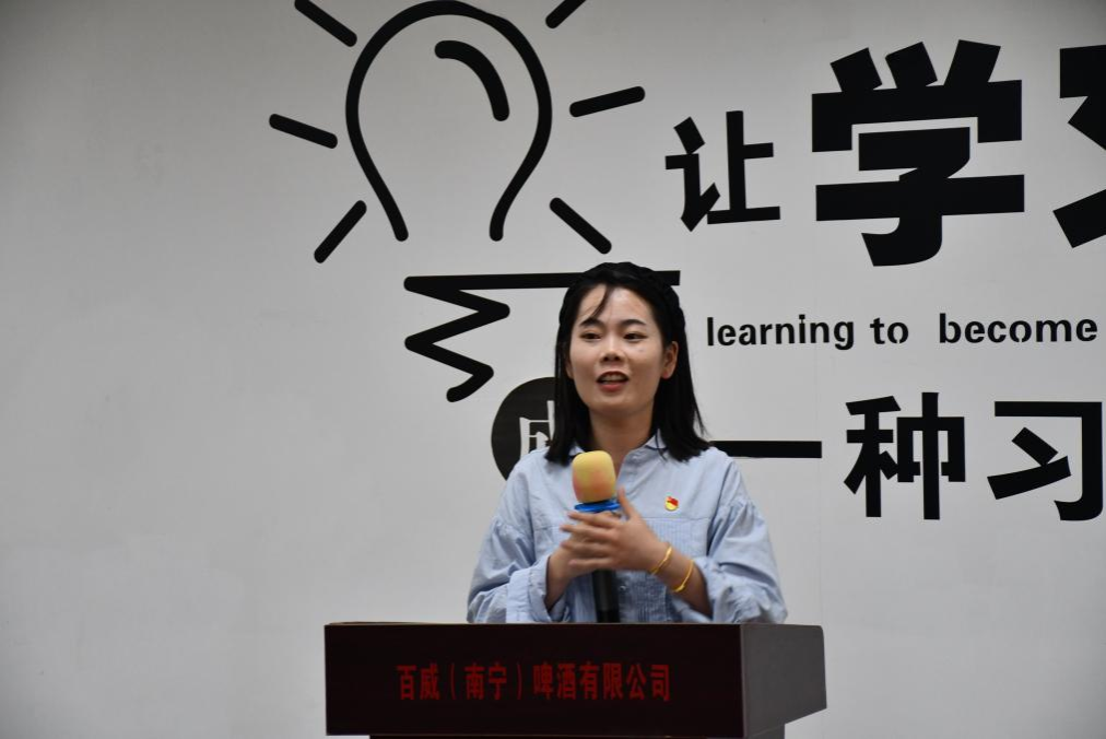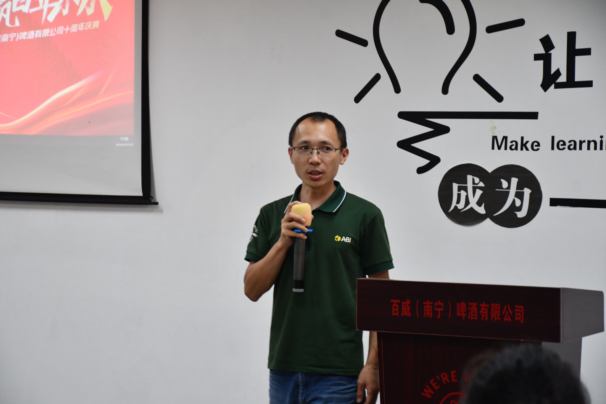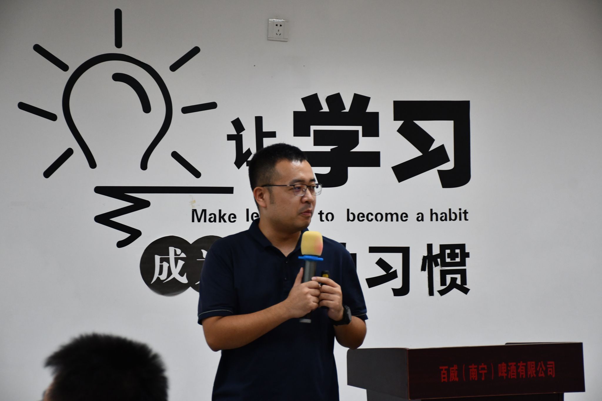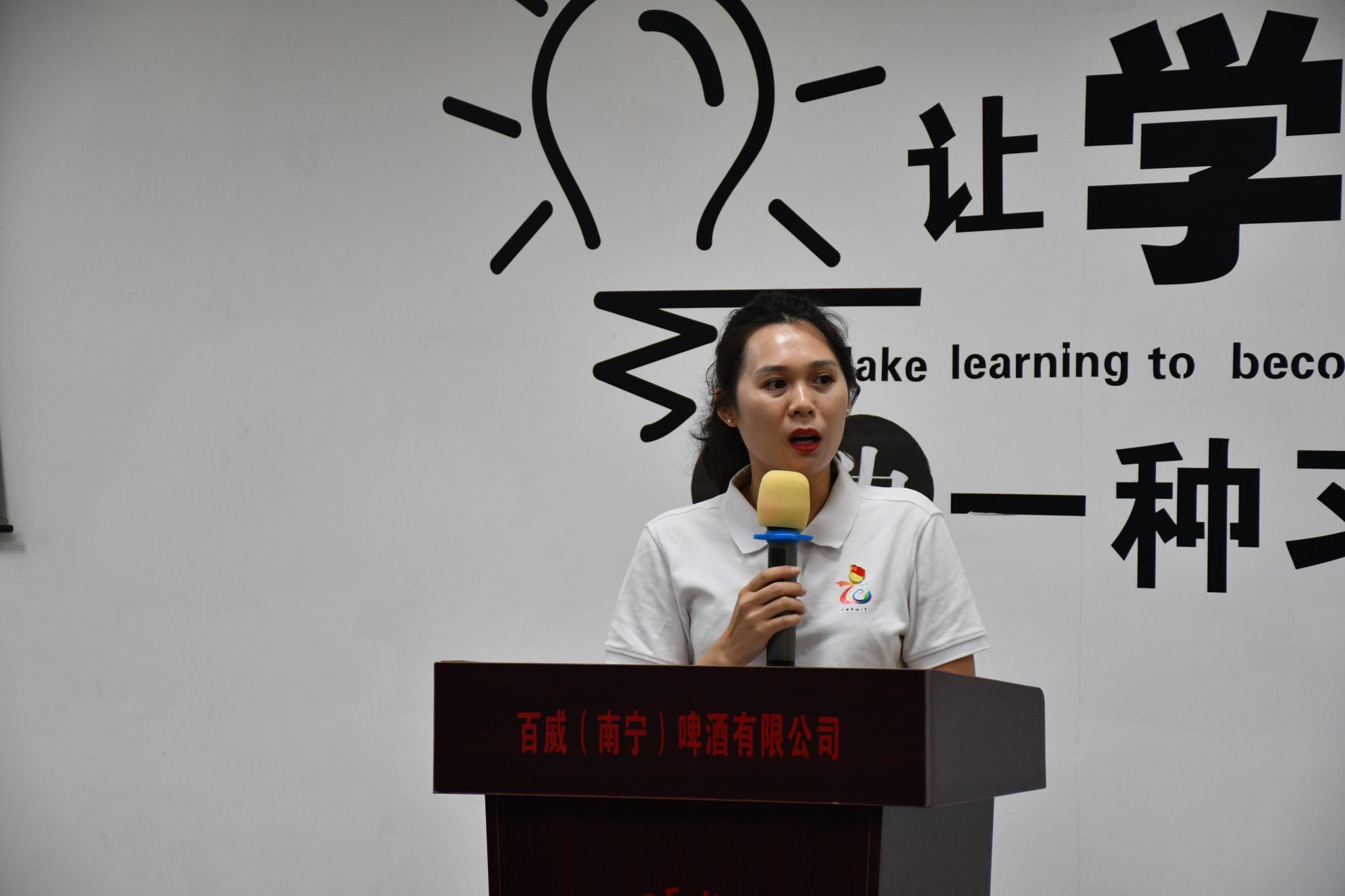 (百威〔南宁〕啤酒有限公司党支部书记郝凯介绍支部党建情况)
