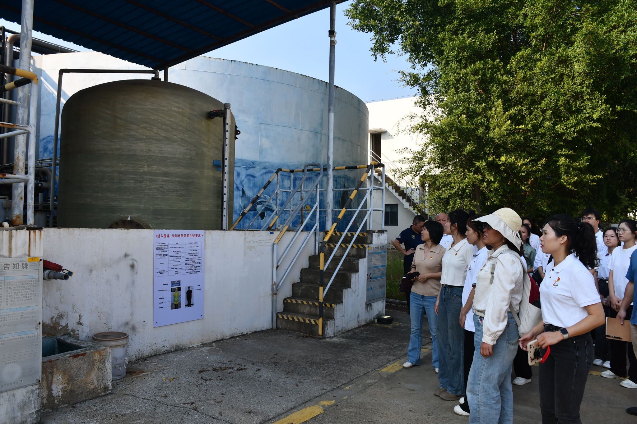 (乐天使环境工程系谢婷老师与百威〔南宁〕啤酒有限公司技术人员探讨中水回用工艺)