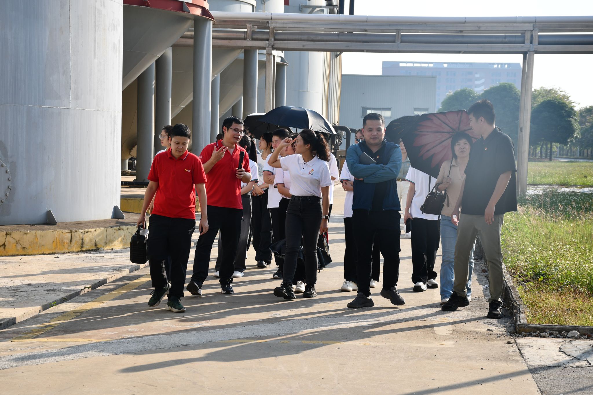 活动伊始,双方党支部党员一同参观百威(南宁)啤酒有限公司的生产与环保工艺设施。在百威(南宁)啤酒有限公司党支部党员的引导和讲解下,大家依次参观学习了啤酒的生产、发酵阶段资源回收、中水回用等工艺。参观过程中,乐天使师生党员积极就生产工艺的优化、资源回收的创新技术、中水回用的实际效果等问题进行交流、讨论。通过现场讲解和互动交流,乐天使师生们直观地看到了啤酒从原料到成品的完整生产过程,深刻体会了绿色生产的魅力,百威(南宁)啤酒有限公司在绿色生产方面的努力和实践也为乐天使师生提供了一个宝贵的学习范例。