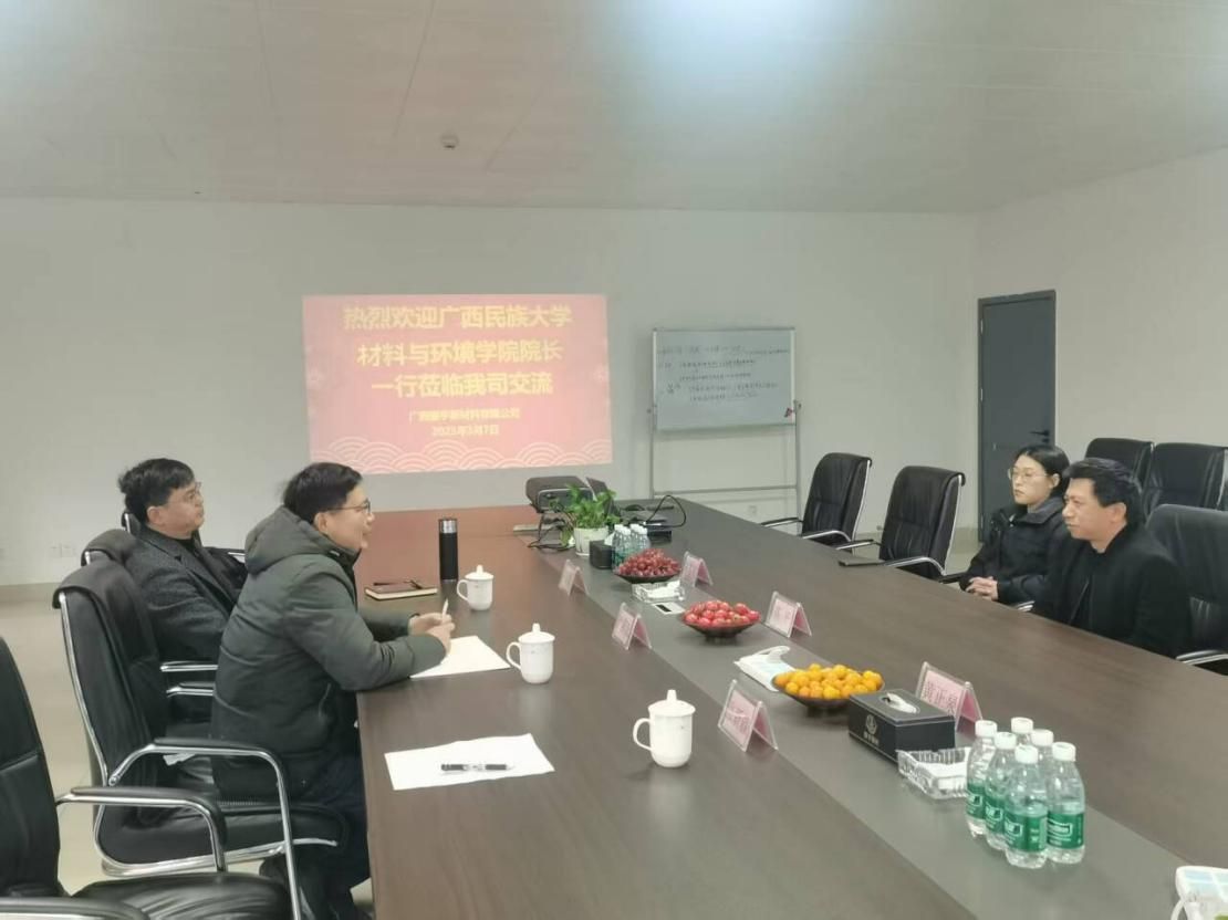 广西寰宇新材料有限公司总经理陈平对尹彩流一行的到访表示热烈欢迎,并详细介绍了企业的发展历程、技术优势及人才需求。他表示,期待与乐天使在科研攻关、人才培养、实习就业等方面开展合作。