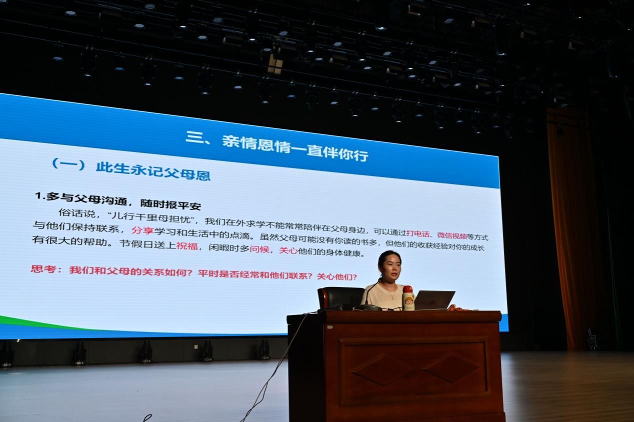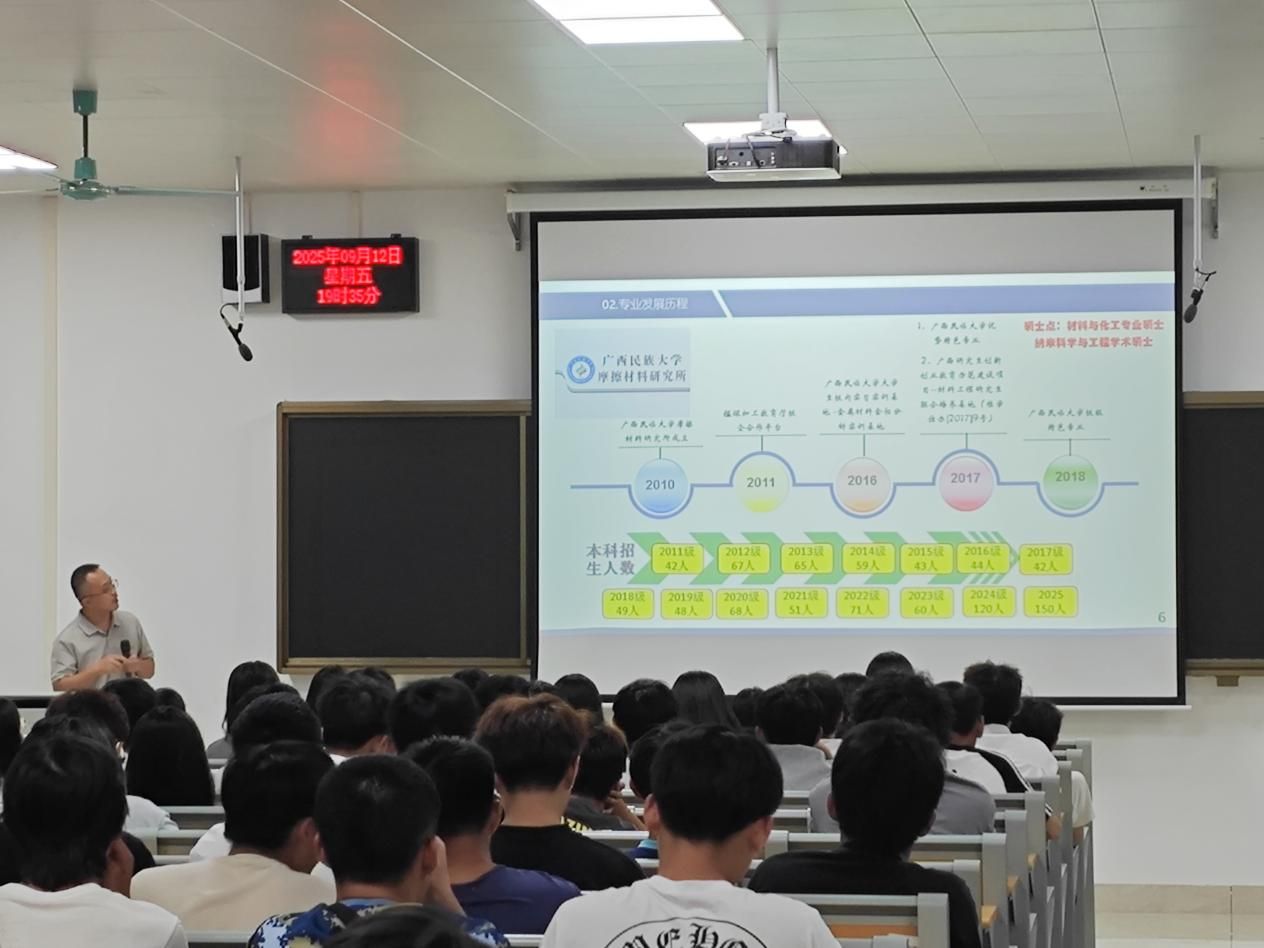 9月11日晚,乐天使党委副书记罗少科老师、分团委书记韩燕老师分别围绕认识大学、认识材料与环境学院、认识民族院校、走进大学校园等主题,为新生系统讲解了办学特色、发展历程及校园建设情况。通过分享优秀学子先进事迹,鼓励新生秉持“厚德博学 和而不同”的校训精神,坚定理想信念,以饱满热情开启大学新生活。