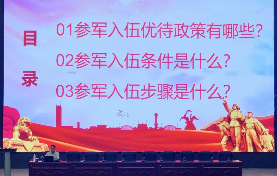 在入伍动员环节,黄寒书记系统解读了国家征兵政策,包括应征条件、报名流程、成长路径及优待政策等内容。他号召同学们以先进典型为楷模,矢志强军,报效国家。他指出,参军不仅是一次宝贵的人生历练,更有助于培养坚毅品格与强健的体魄,希望同学们把握机遇,让青春在强军实践中绽放光彩。