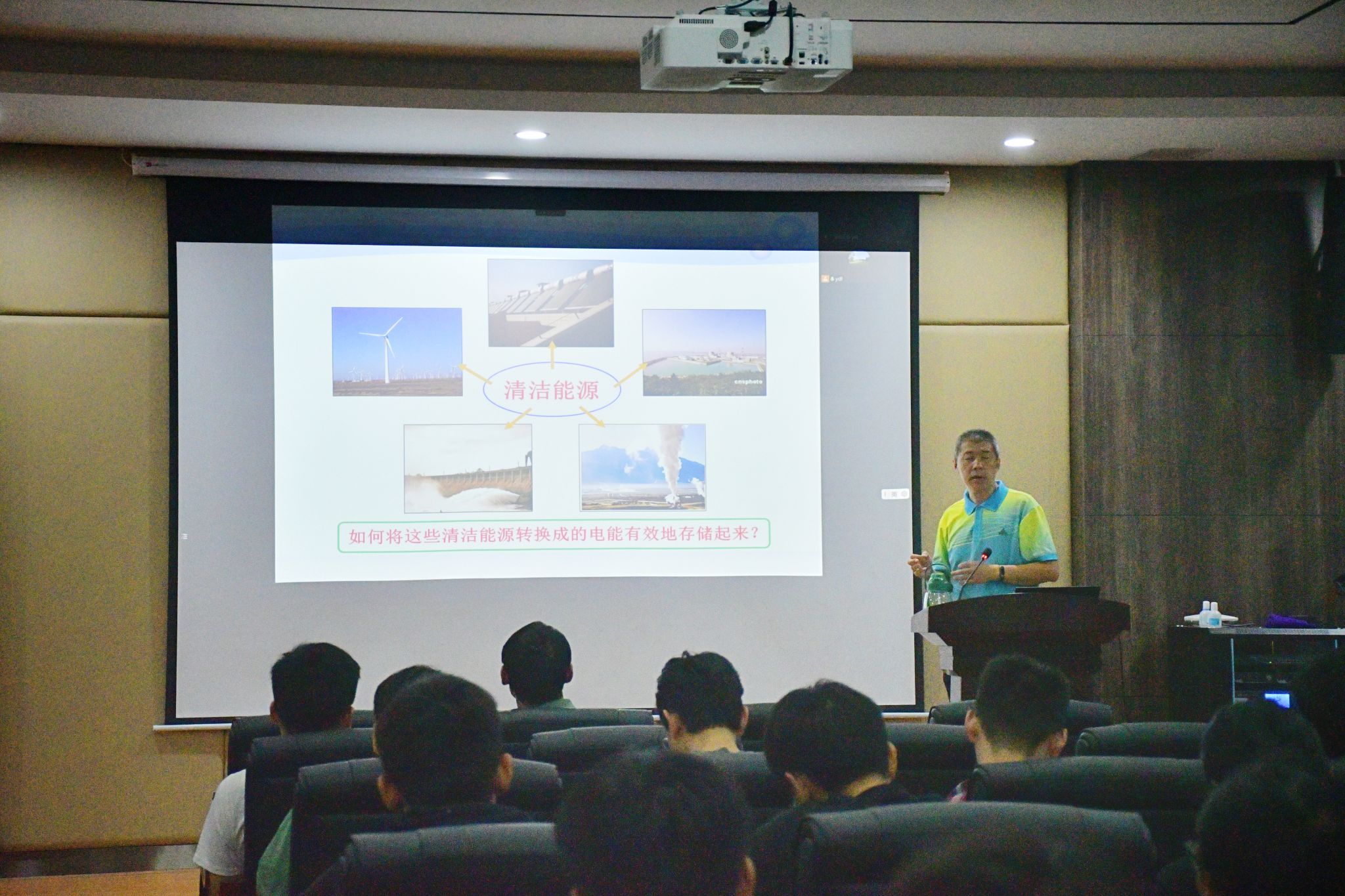 在讲座上,颜东亮教授先从能源差异、能源紧缺、环境问题为切入点,分析不同储能材料与器件的优缺点。随后,他向师生介绍新能源器件之一的锂离子电池,对锂离子电池的发展历史、适用范围等作具体介绍,同时还介绍另一个新能源器件——超级电容器,超级电容器通过氧化还原反应进行工作,功率高,工作时间短,效率快。