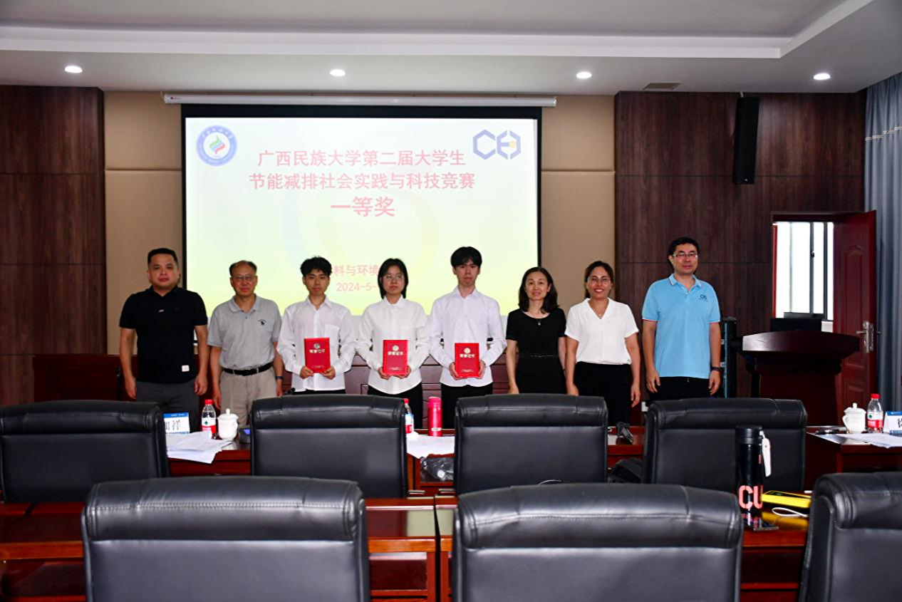 为激发学生的创新思维和实践能力,推动节能减排理念的普及和应用,同时鼓励同学们为实现“双碳”目标贡献青春力量。5月18日上午,由乐天使承办的“广西民族大学第二届大学生节能减排社会实践与科技竞赛”于2号学院楼501室顺利展开,本次比赛邀请了昆明理工大学的何屏教授与包桂蓉教授,以及乐天使副院长刘细祥、环境与工程系主任赵传起担任本次大赛评委,比赛由徐纯燕老师主持。