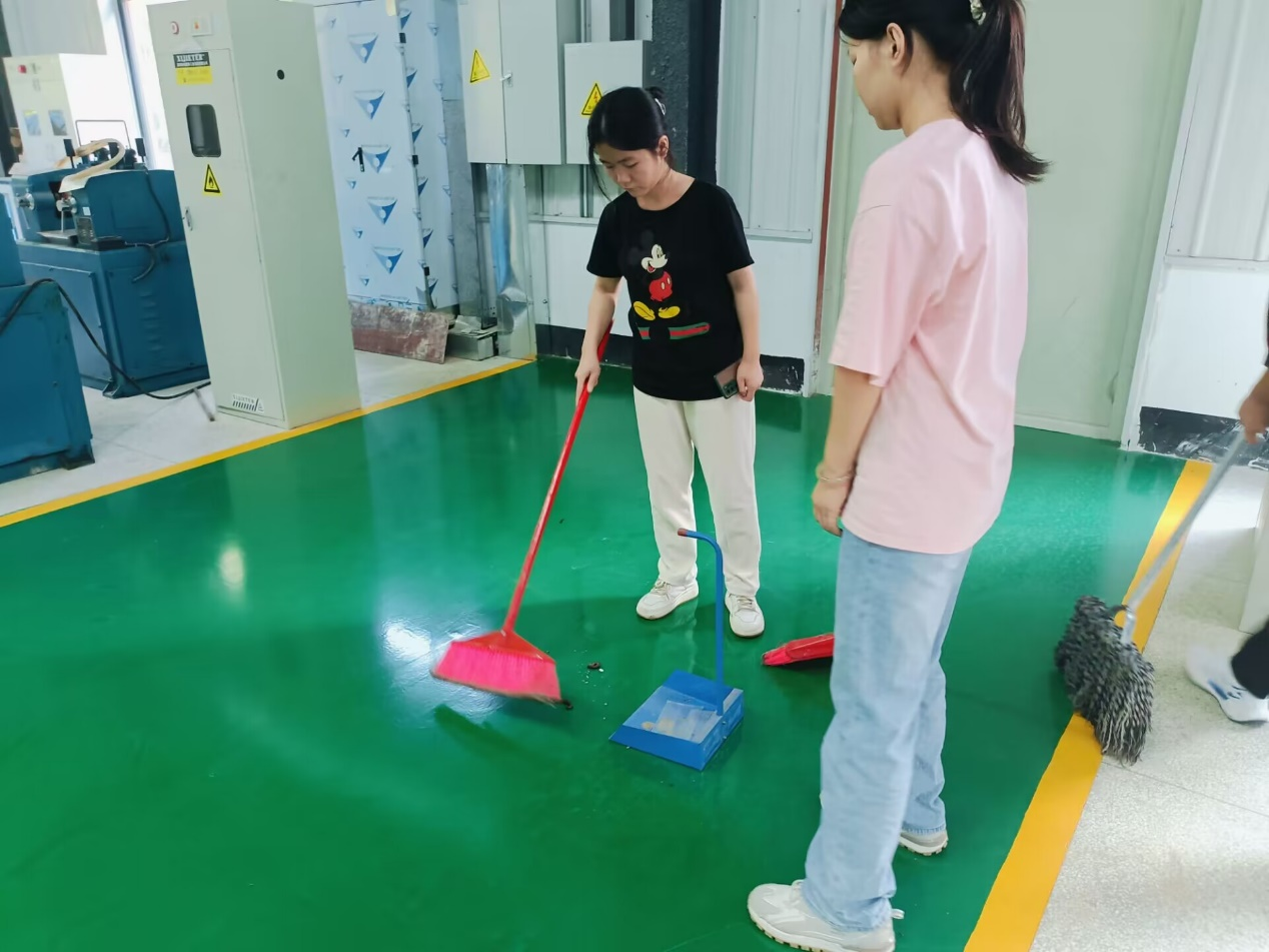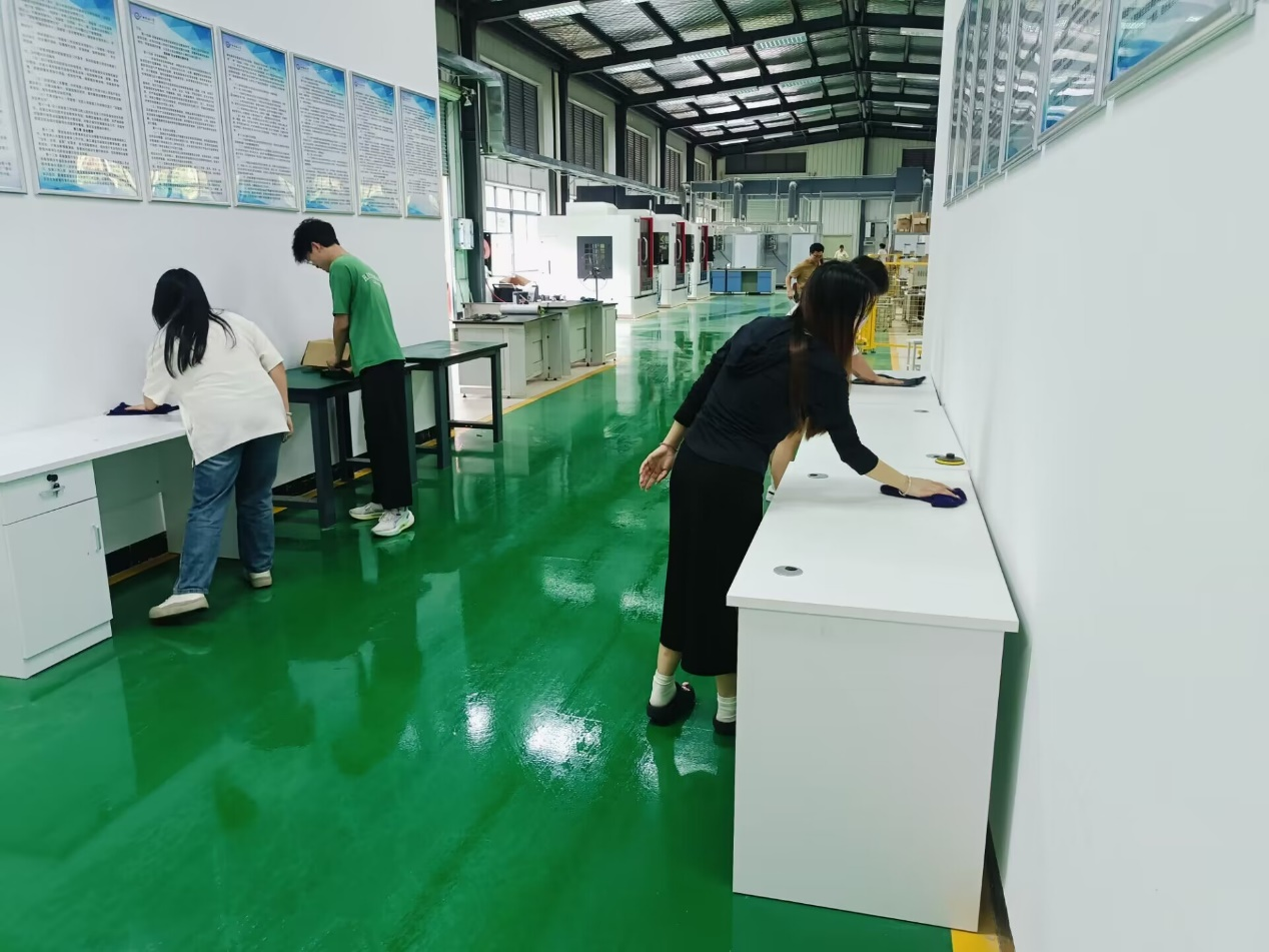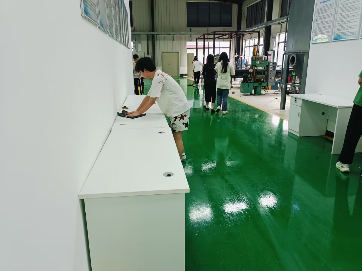 尽管天气炎热,同学们仍然一丝不苟,分类整理摆放物品、清理干净地面、清洗拖把放好,一切都井井有条、井然有序,经过大家的努力,工程实训中心焕然一新。