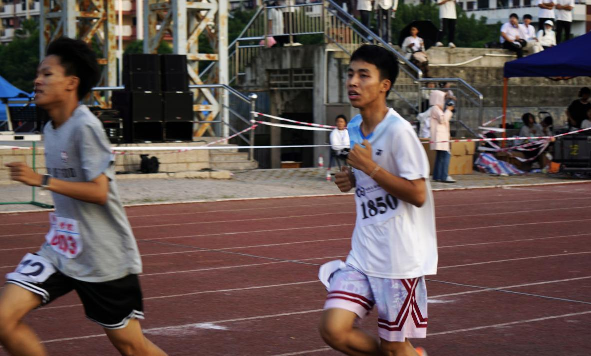 (2023级新能源材料与器件01班罗平权、2023级高分子材料与工程01班陈廷祺男子5000米比赛现场)