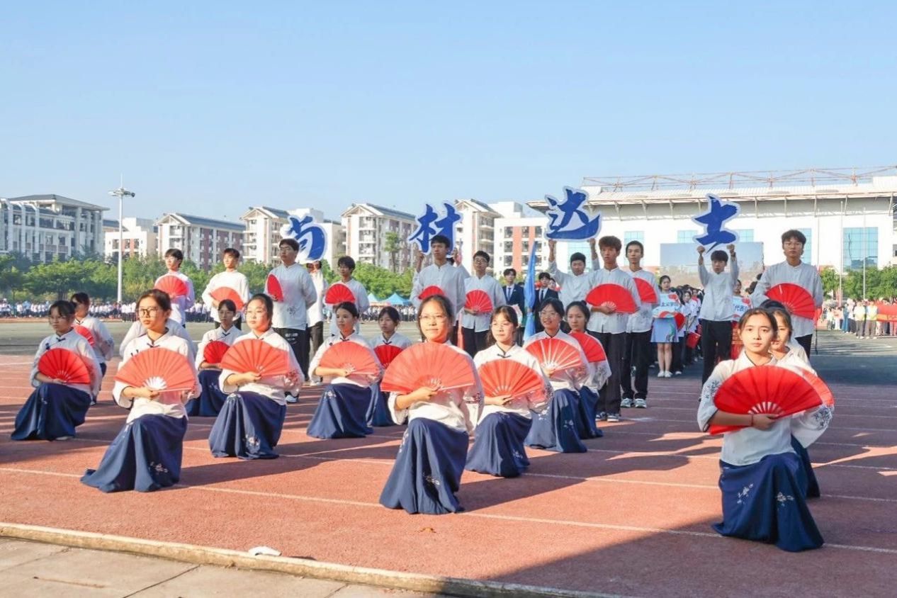 校运会开幕式上,乐天使师生代表方阵身着统一的服装,步伐坚定、自信从容、精神抖擞,昂首阔步地走过主席台。伴随着激昂的歌曲旋律,材环学子们手持红扇给全校师生带来了一段精彩的扇子舞表演,在表演中材环学子们巧妙地将乐天使的文化元素融入其中,他们齐声高喊院训“尚材达士 穹环致远”,声音铿锵有力,充满了青春的朝气与活力。“少年自有少年狂,身似山河挺脊梁,敢将日月再丈量,今朝唯我少年郎……”。这一刻,他们不仅是材环学院的骄傲,更是新时代青年的代表,用自己的行动诠释着青春的价值与意义。