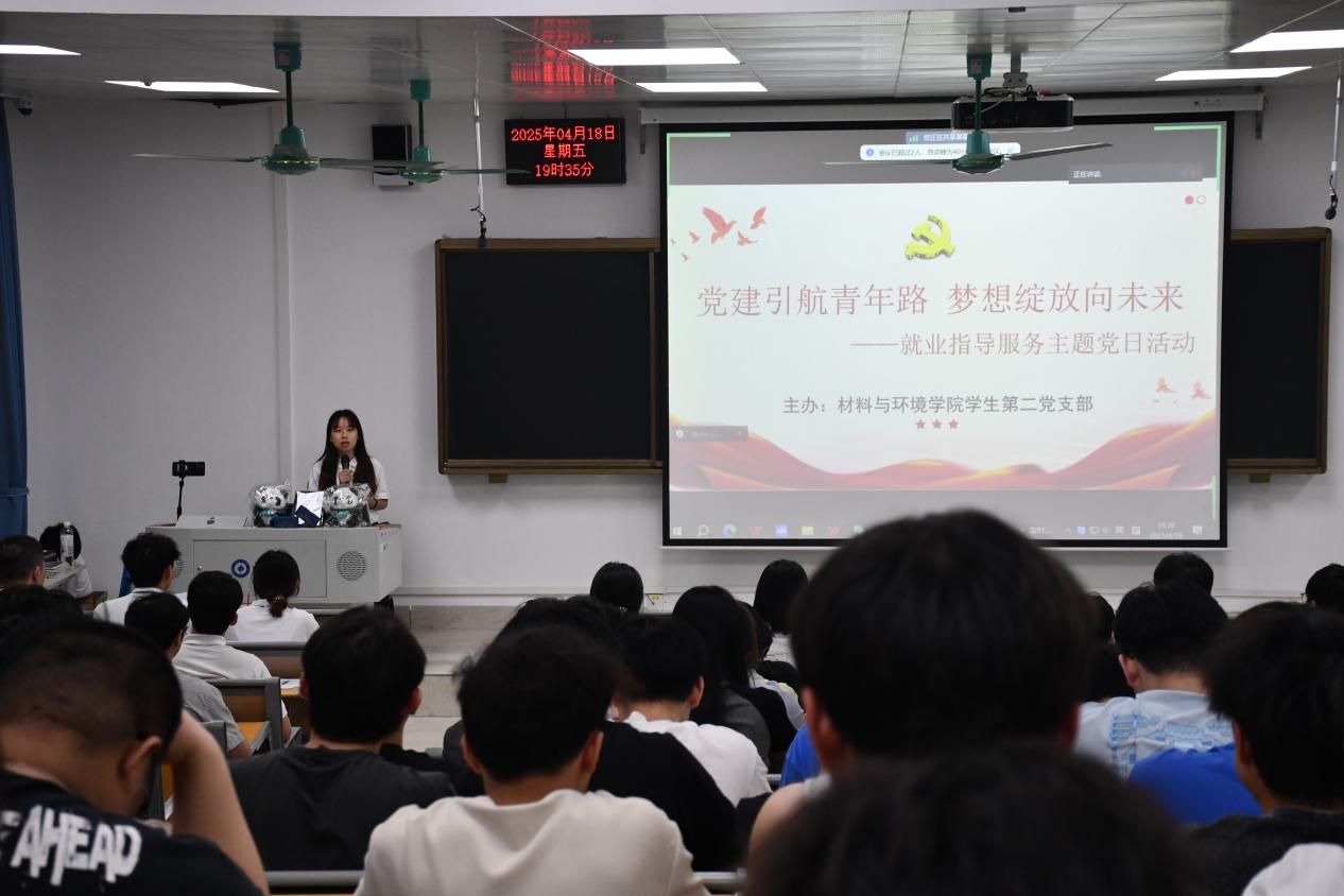 为探讨如何做好就业准备,帮助同学们规划职业发展,提升求职技能。4月18日晚上,乐天使学生第二党支部在武鸣校区1号公共教学楼B栋212室开展了就业指导服务主题党日活动,以“党建引航青年路,梦想绽放向未来”为主题,通过经验分享、现场交流、问答游戏等形式,为参与活动的同学们提供就业帮助。本次活动由支部党员韦秋乐同志主持,吸引了来自学院各年级、各专业180余名学生参与。