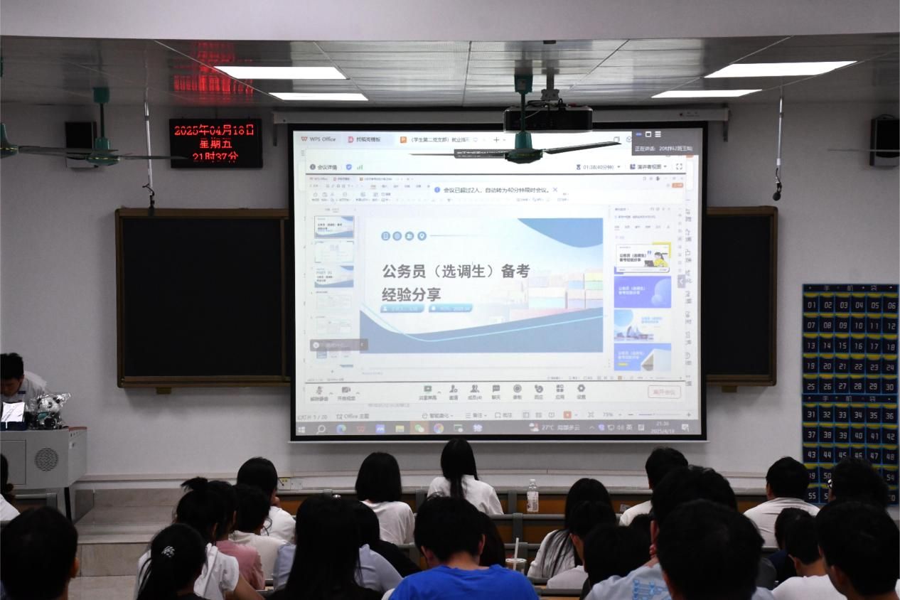 公务员(选调生)备考的经验分享环节,2024届金属材料工程毕业生党员玉灿同志为大家系统地讲解了公务员(选调生)备考的基本流程和关键要素。他首先介绍了公务员(选调生)考试的种类和科目,详细解析了各个科目的考试内容和题型特点。接着,玉灿同志结合自身备考经历,分享了高效的学习方法和复习策略,如如何制定合理的学习计划、如何选取合适的复习资料、如何进行有效的模拟测试等。他还特别强调了时间管理和心态调整的重要性,鼓励同学们在备考过程中保持积极乐观的心态,合理安排时间,避免临时抱佛脚。